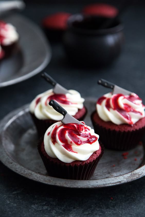 -ein schmackhaftes Kirschküchlein, meisterhaft erstochen! Fruchtblutspuren rinnen vom sahnigem Krönchen dieesr Köstlichkeit. Erdolcht durch das klassische Küchenmesser