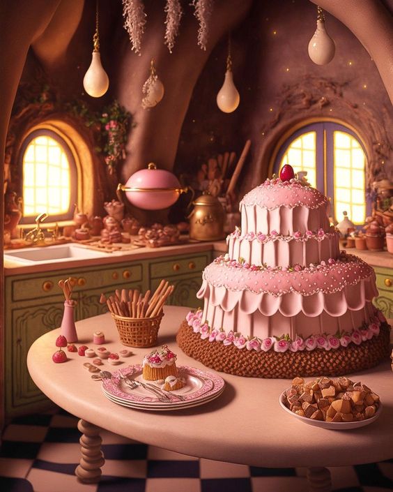 In der Nacht vor dem prunkvollen Ball im Schloss scheint die Bäckerei der Süßen Perfektion ein geheimes Reich der Süßigkeiten zu sein, in dem Kunst und Genuss Hand in Hand gehen.