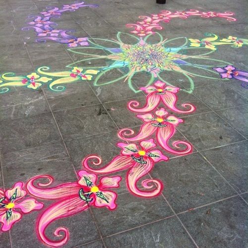 Tochter dabei beobachten, wie Beide gemeinsam die Straßen vor dem Hof der Wunder mit Kreide bunt färbten. Beide schienen unglaublichen Spaß zu haben. Das Lachen des Mädchens erhellte die Straßen und auch der fröhliche Gesang Beider dürfte man hören.>