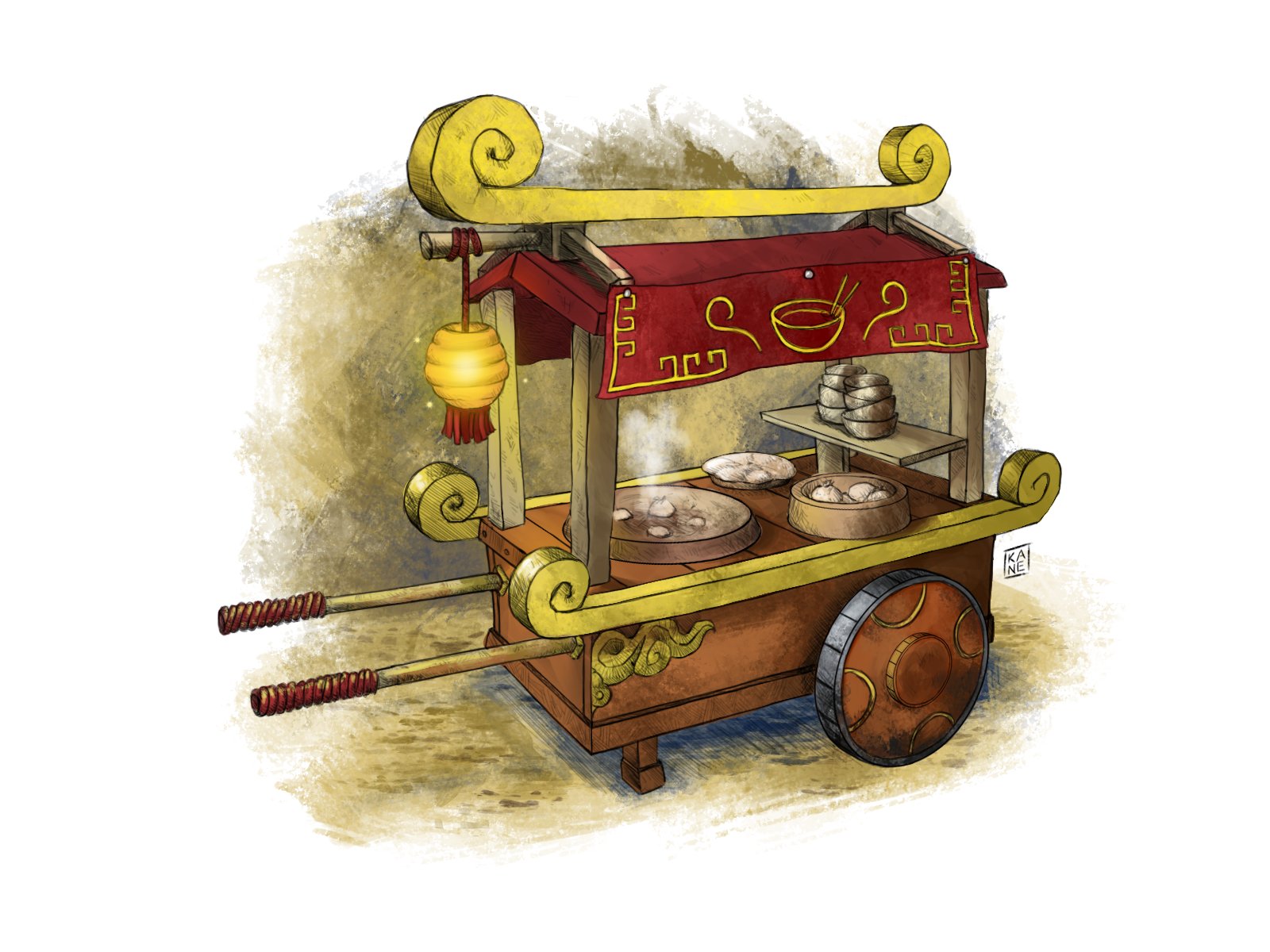 Heute war es so weit, schon zur Mittagszeit konnte man den Duft wahrnehmen, der aufgebaute Essenswagen am Kanal bot pandarische Nudeln mit Gemüse an. Meister Perlpfote durfte Schale um Schale an die hungrigen Bürger verteilen, dann gings wieder in die Küche und am Nachmittag duftete es abermals lecker an gleichem Ort.