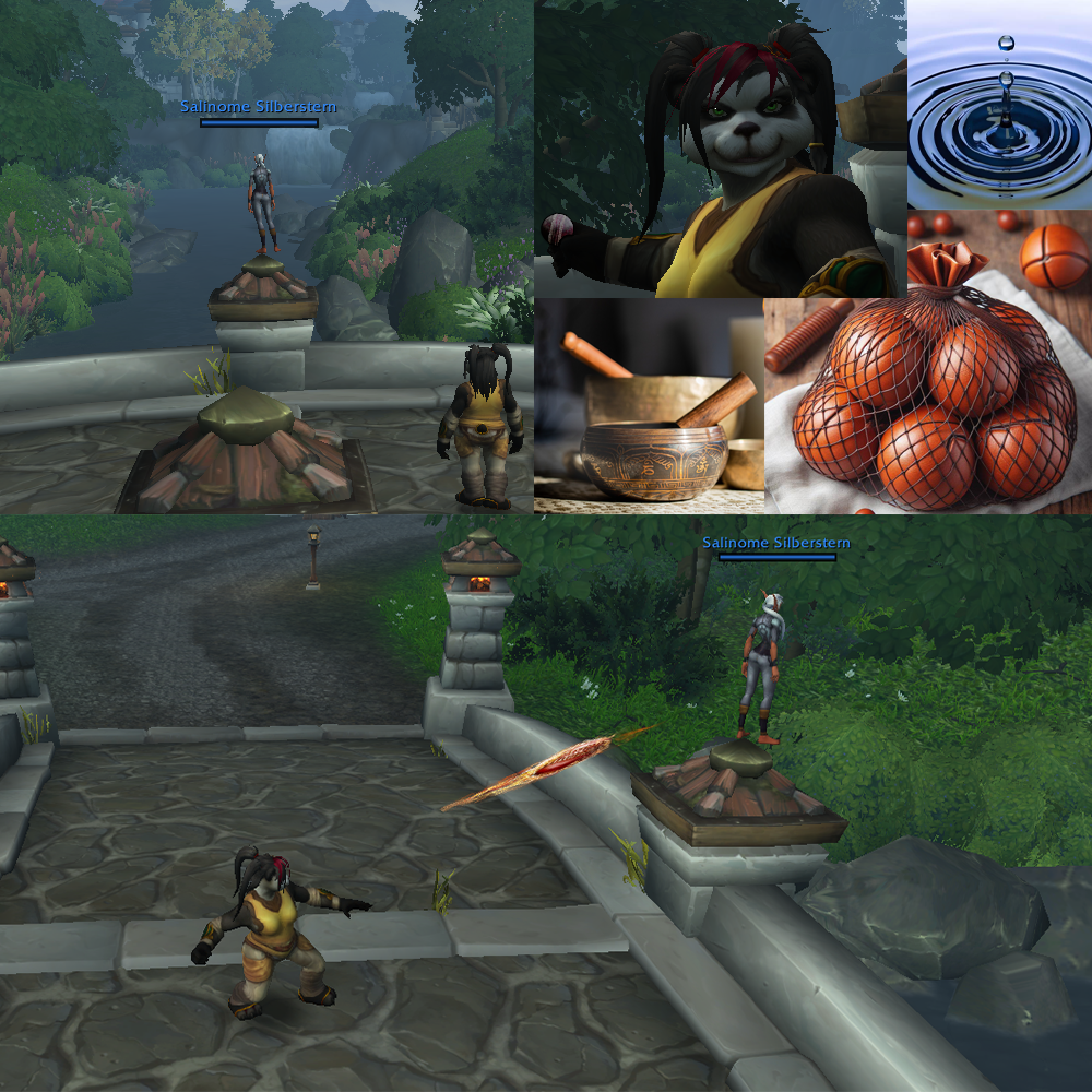 Dann aber schien es wirklich wieder mehr einem Training als einer Meditationsstunde zu gleichen. Erst balancierte man gemeinsam auf der Brücke südlich von NITRO dann kam was kommen musste, das Balancespiel der Elfe wurde erschwert und nach vielen Versuchen und war die Pandarin dann "Sieger"?