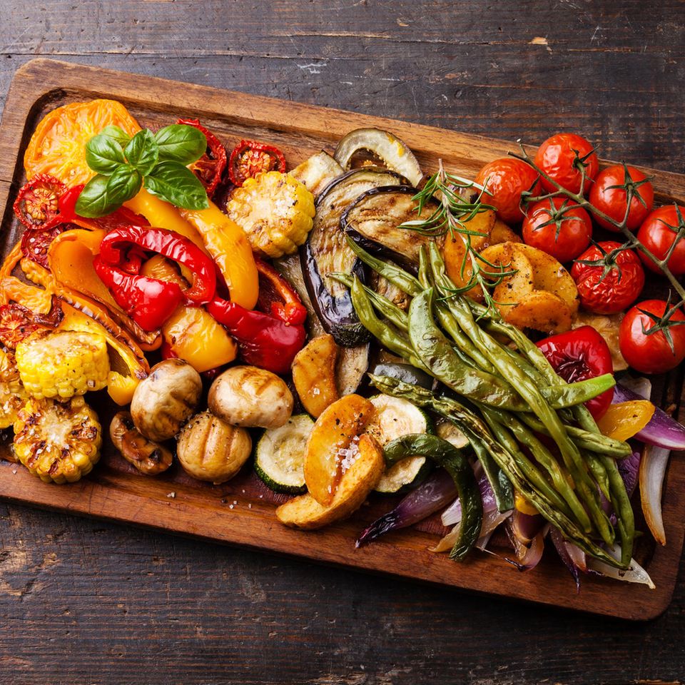 Für die gesunden Geniesser, gibt es bei alle dem noch ein buntes Sortiment von frisch gegrilltem Gemüse.