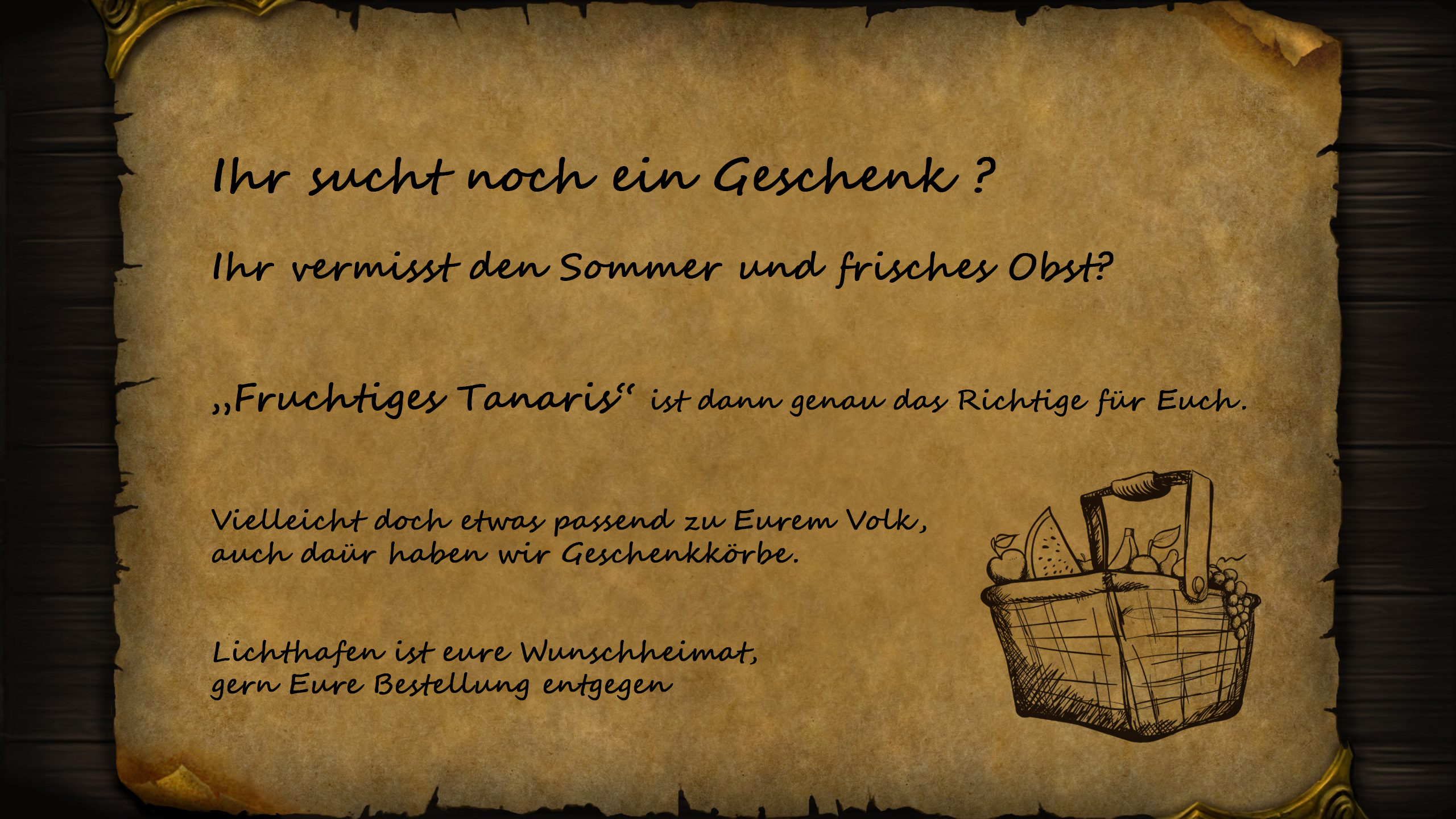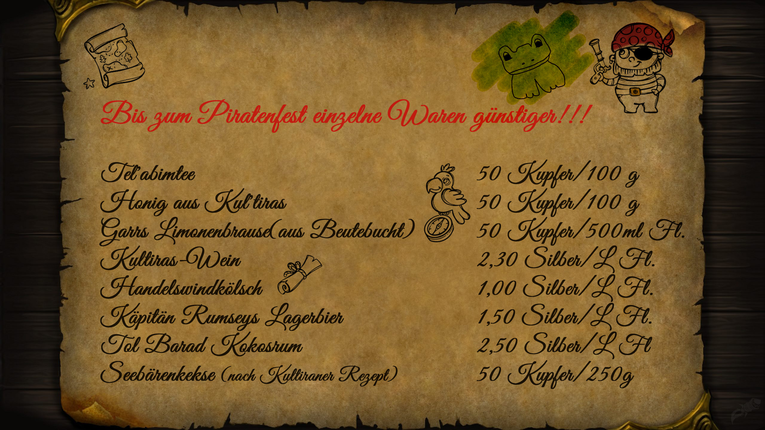 <Um die Mittagszeit(05.07.) kam die Laden in das Geschäft und wie immer wird ein Kontrollblick zum Geschäftsbrett am Gebäude geworfen. Prinz Belakor schaut natürlich ob Froschi noch neben dem niedlichen Piratenaushang prank, der wird somit stolz haften beiden.