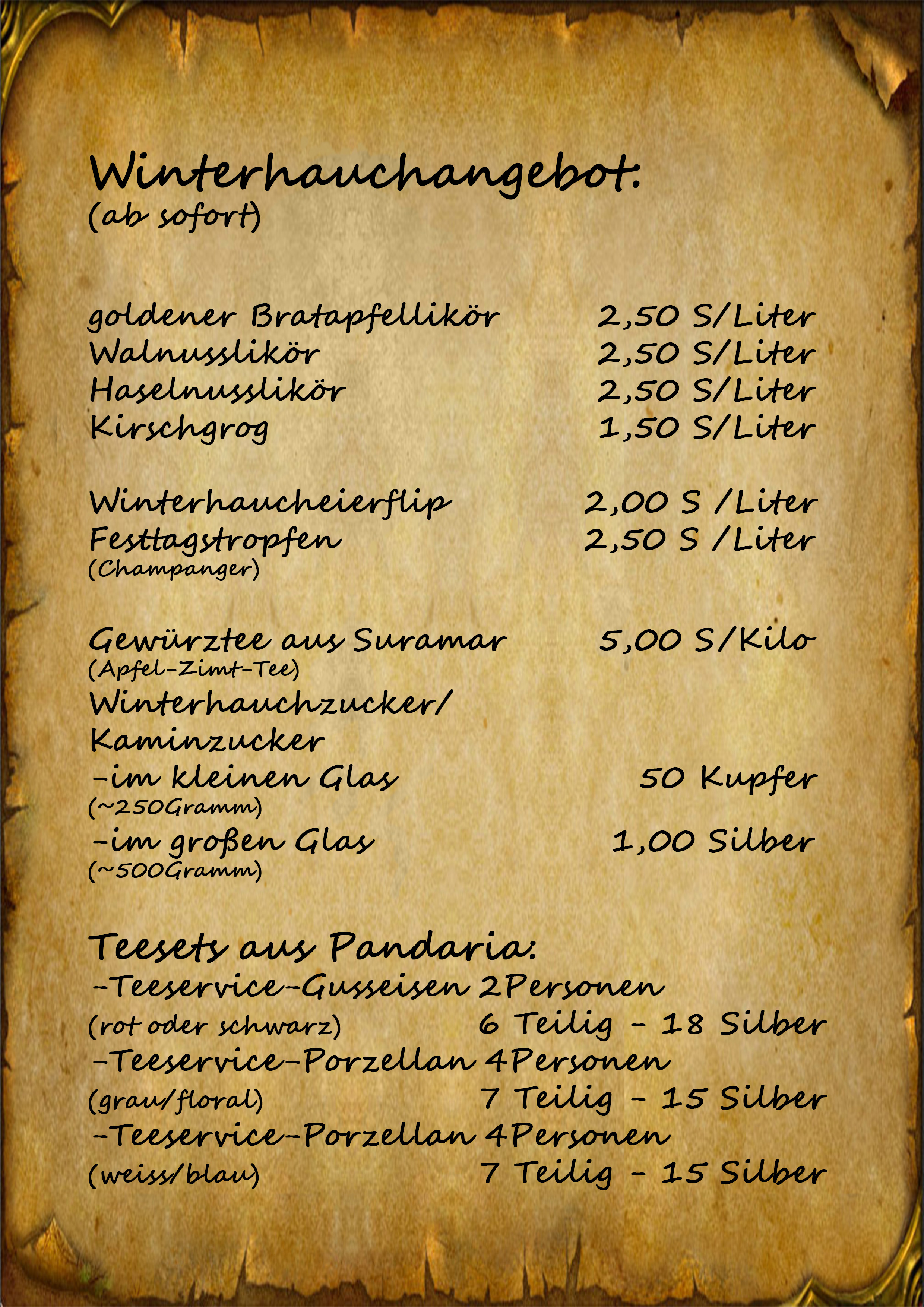 *Im Laufe des Tages wird ein Blättchen an das Brett am Geschäft geheftet.*