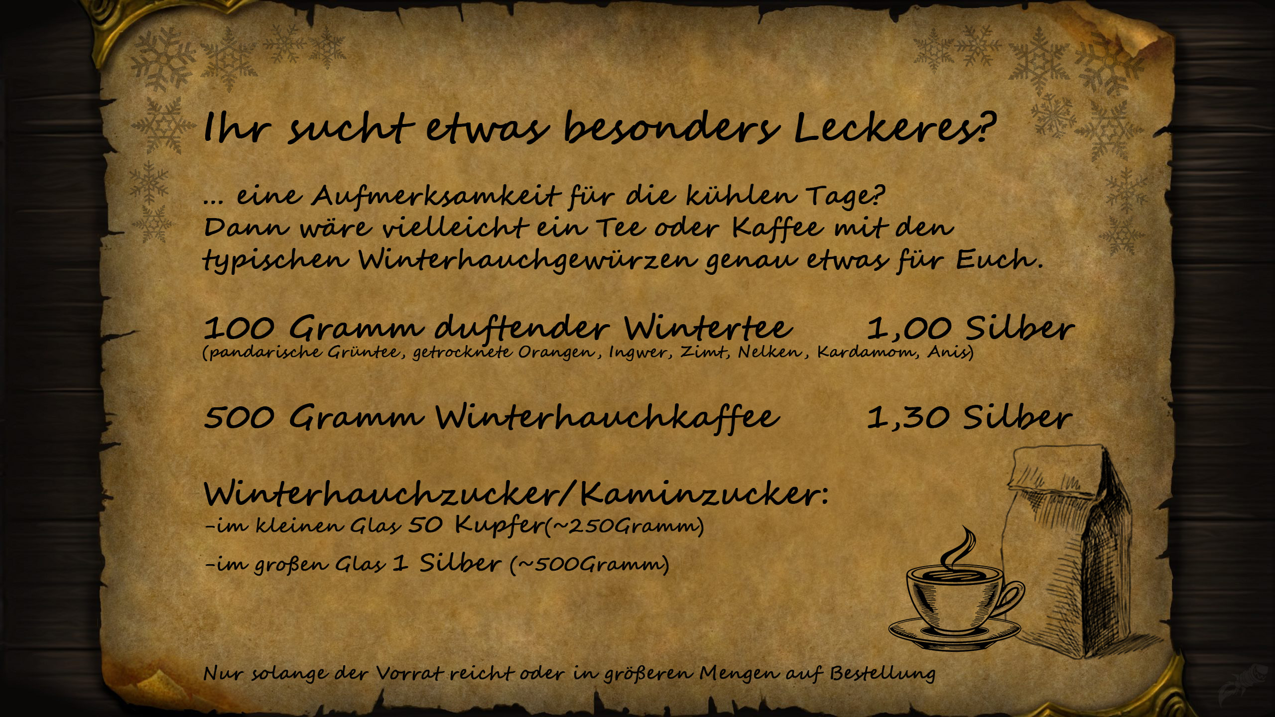 *Am Morgen wird ein Aushang an das Ladenbrett angeheftet.*