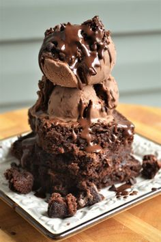 Schokobombe- Heiß auf Eis ( Heiß klebriger Schokoladenkuchen , dazu zwei Kugeln Schoko-Speiseeis und Schokoladensoße)