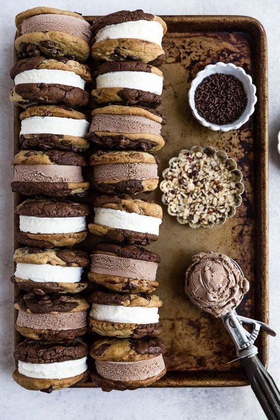 ( Mürbeteig-Gebäck, das beim Abbeißen zart und weich und im Mund zu vielen, kleinen Stückchen zerbröselt. Wahlweise mit Schoko- oder Vanille-Eis gefüllt)