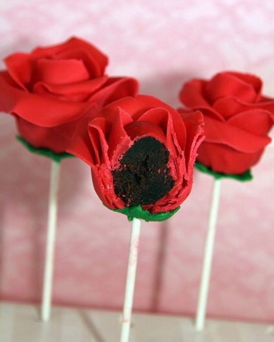 Schokokuchenrose am Stiel mit Marzipanblütenblättern