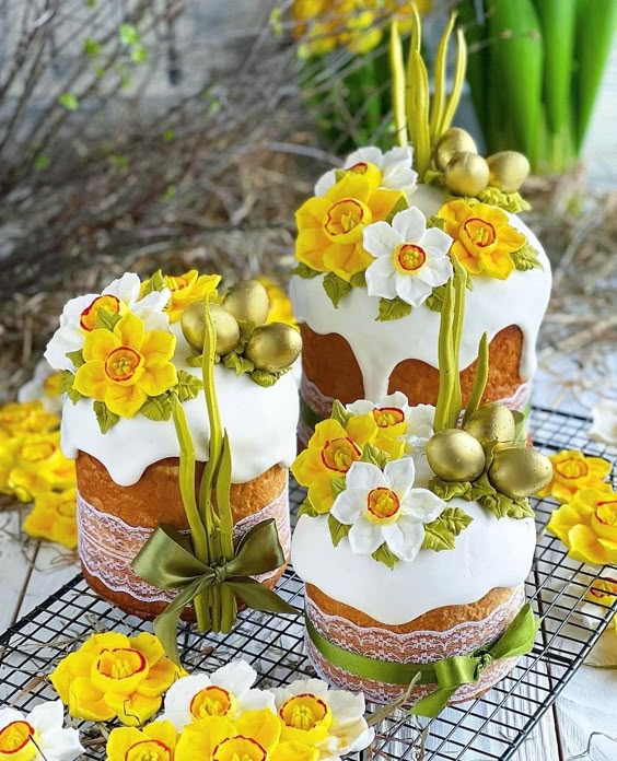 gebackene Frühlingsboten ( luftiger Rührkuchen mit Frühlingsdekor)