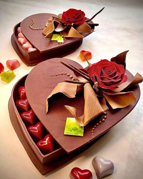 Wer seine Aufwartung ganz besonders gestalten möchte, kann dies mit erlesenen Schoko-Nougatpralinen versuchen. Ein ganz besonderer Blickfang hierbei, die aus Schokolade, handgefertigte Herzschachtel.
